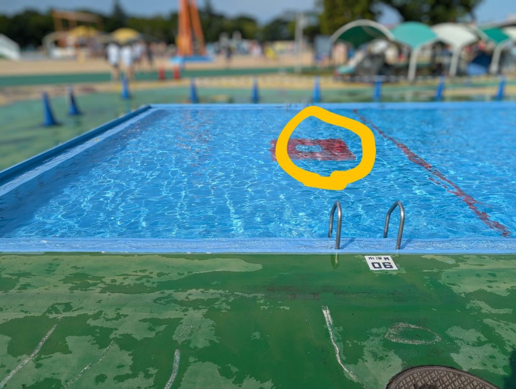 特に少年時にスライダー経験のあるお父さんが黄色スライダーで、写真の赤く縁取られた排水溝まで水面滑走!